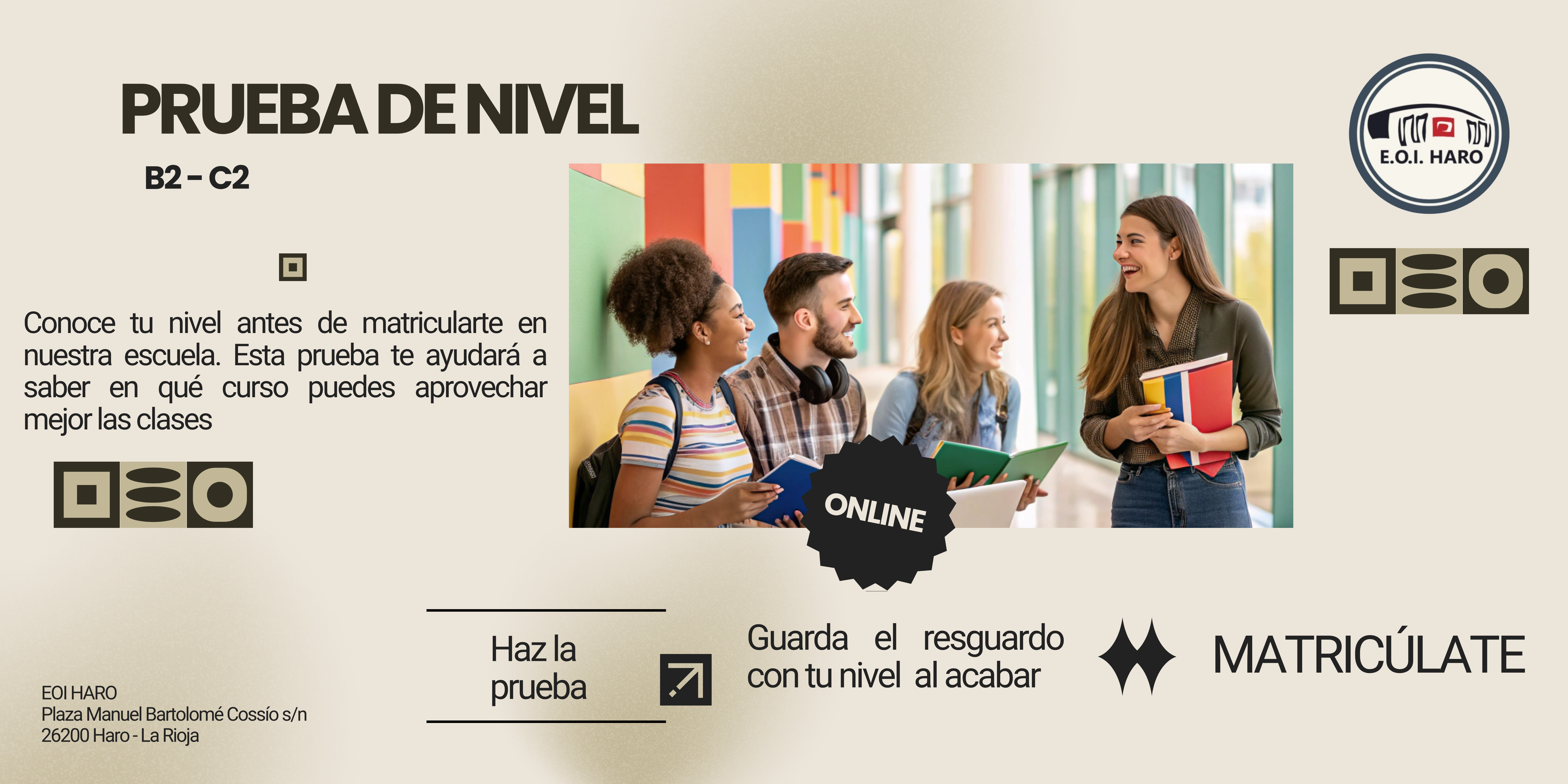 Nota: Se recomienda realizar la prueba sin ayuda de diccionarios ni traductores para que el resultado sea lo más fiel posible a tu nivel real y asegurar así una asignación de plaza correcta.